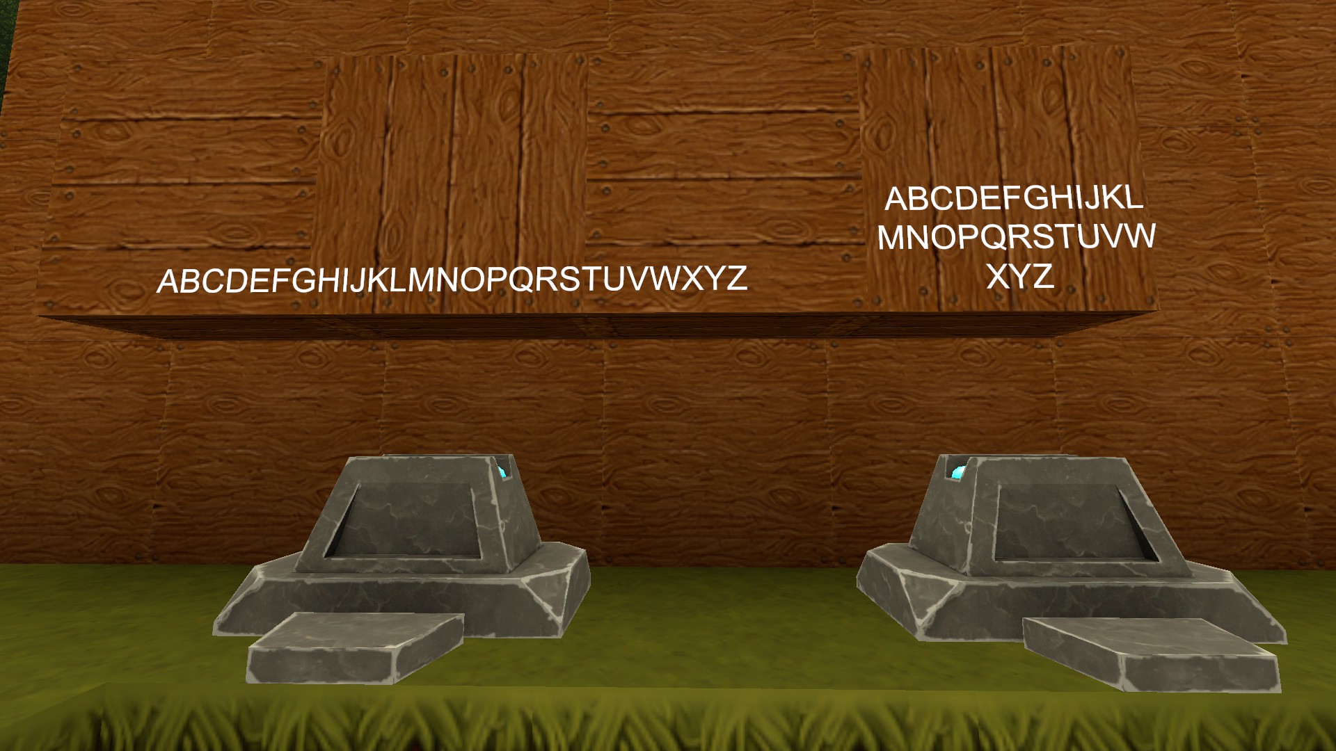 In the left sign we see the effect of completely omitting the WIDTH tag, which gives it the default value of 3. In the right sign we see how the text wraps almost at the limit of the block (slabs are there to have a closer reference to the block limit because the text normally sits in the middle of a block on the z-axis, which is the axis that determines the forward and backward positions related to the Arc Sign itself).